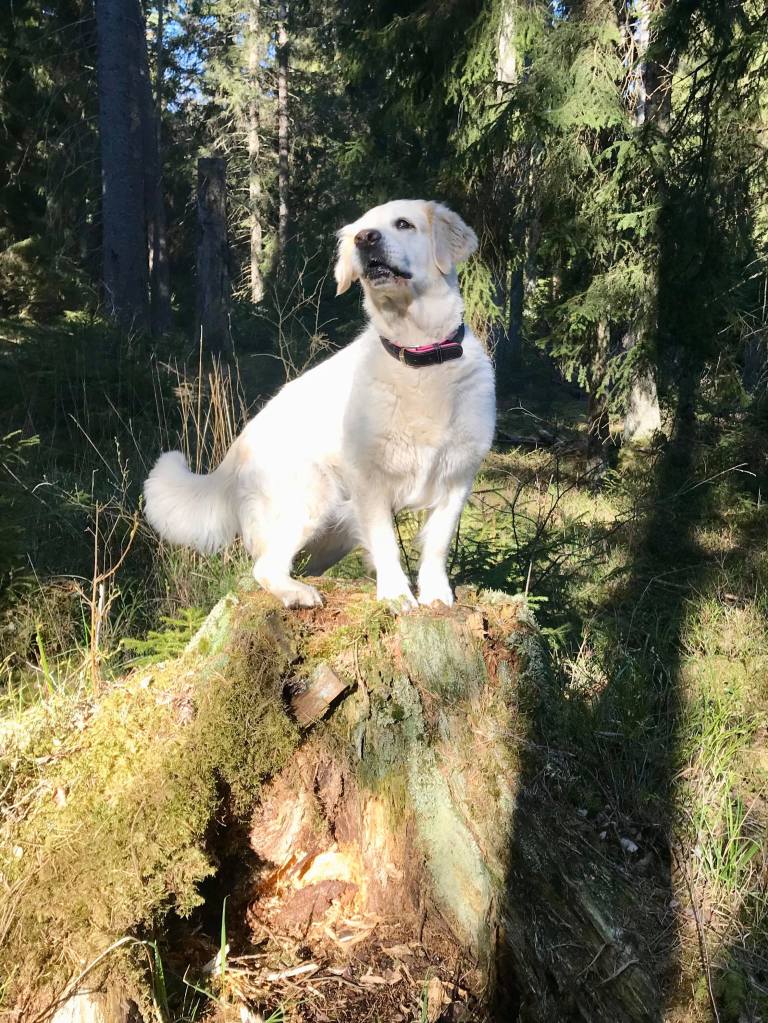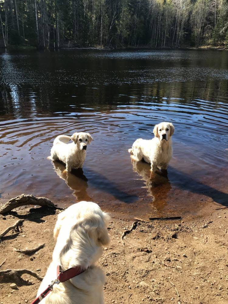 Känns bra att skogen bakom knuten och nära till sjöar där hundarna kan bada… Vi var ute och gick både på lördag och söndag och det blev en runda över milen bägge dagarna.