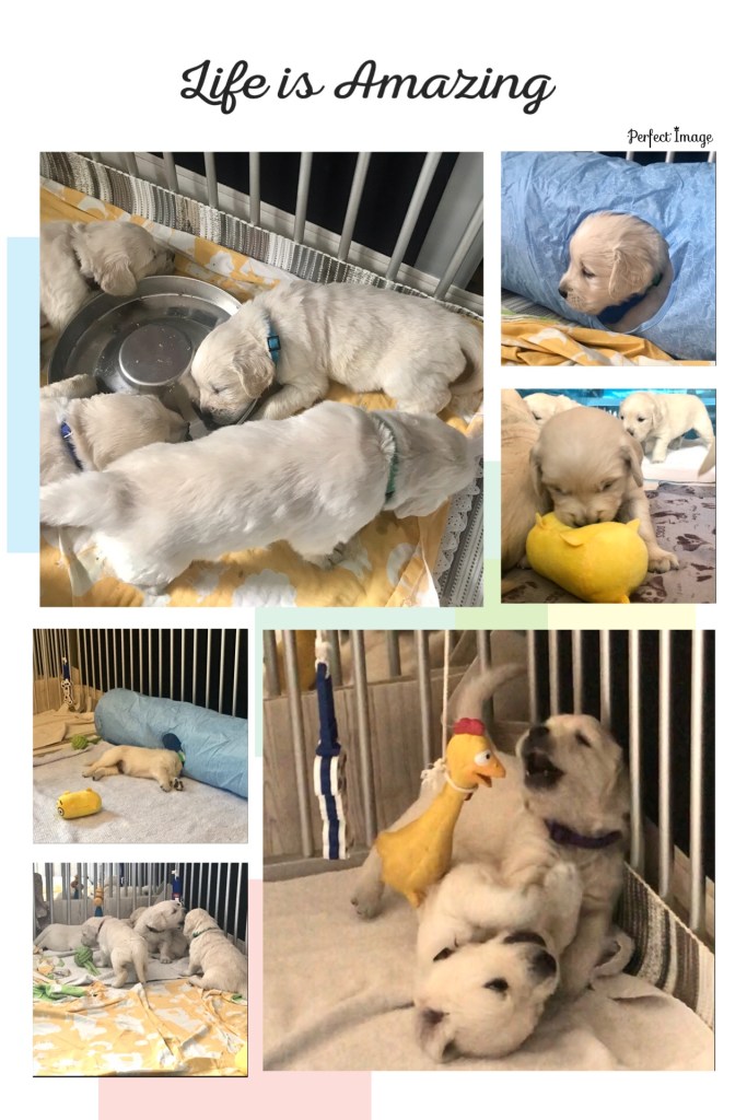 Nu har de sylvassa mjölktĂ€nderna brutit ut ordentligt. Rosie Ă€r ypperliga uppfostrare har sĂ„dan tĂ„lamod och moderlig vĂ€nlighet och bestĂ€mdhet. Hon har en mycket viktig roll dĂ„ hon lĂ€r sina valpar hundarnas sprĂ„k inför framtiden. VĂ„ran roll Ă€r att lĂ€ra dem umgĂ„s med oss mĂ€nniskor. FrĂ„n och med nu blir valparna mycket hanterade av oss varje dag och de har lĂ€rt sig att kĂ€nna igen oss och vad som Ă€r pĂ„ gĂ„ng. Helst nĂ€r jag kommer med deras mat, nĂ€r de hör visslingen, âanvĂ€nder en högfrekvent visselpipaâ blir det fart pĂ„ dem â€ïždet ljudet lĂ€rde dom sig snabbt att kĂ€nna igen och de Ă€r inte lĂ€ngre sĂ„ tysta utan kan lĂ„ta som en flock högljudda mĂ„sar dĂ„ de Ă€r hungriga, efter maten sĂ„ Ă€r nĂ„gra som somnar i matbaren och andra som vill leka en stund innan de slocknar. Mesta tiden gĂ„r nu Ă„t att mata dem och stĂ€da efter matningen och dĂ€remellan. Valpar bajsar och kissar i mĂ€ngder nu sĂ„ det Ă€r MYCKET stĂ€dning nĂ€r man har en valpar
