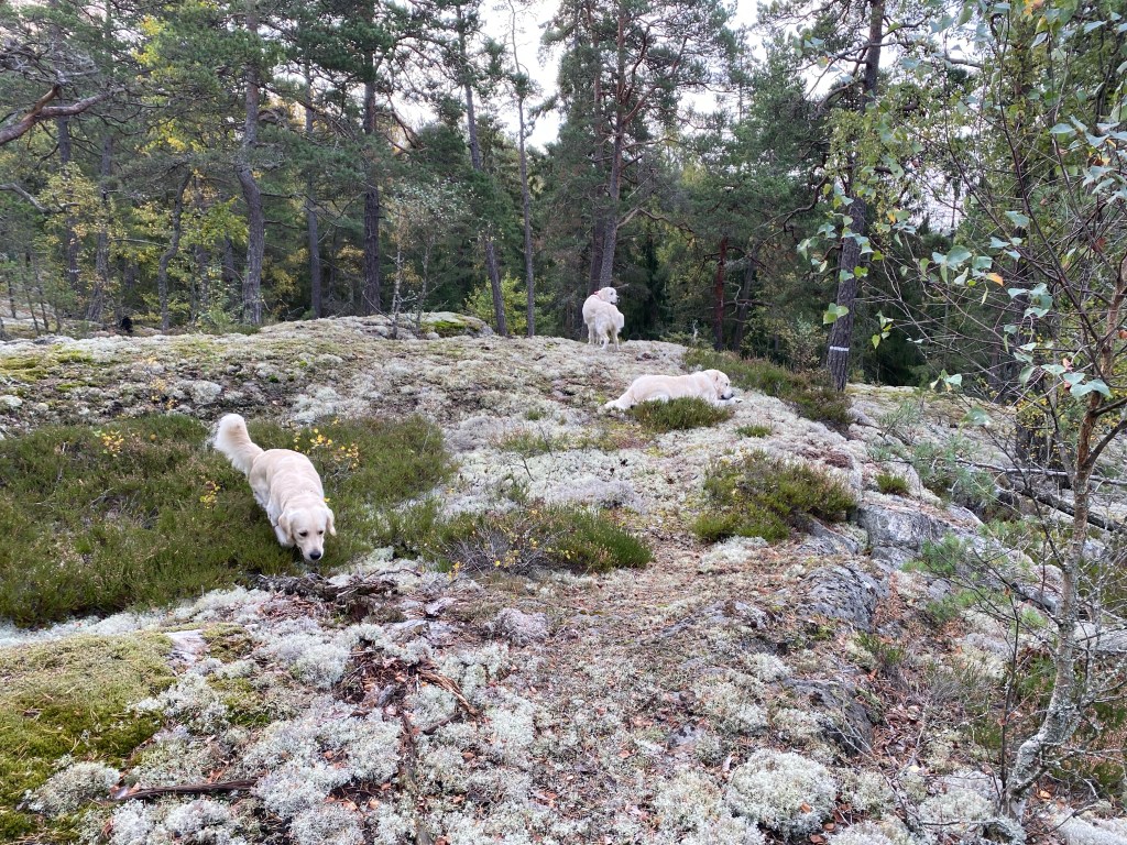Nu har vi kommit in i Oktober 🍂🍃 löven skiftar i färg 🍁 och har börjat falla ner på marken och snart måste man börja att se sig för när man går. Ju fler löv, desto lättare att halka!Idag kom vi iväg före kl 08 på vår morgonpromenad Max «Gold Dione’s One Heart» 15 månader, en lyhörd kille och håller sig nära även när han är lös. Rosie ♥️ 2a oktober🍀 Det är fortfarande mycket grönt i naturen. Det har även kommit in flera röntgen resultat från Rosie – Zappa kullen. Är så glad att ni röntgar era hundar 💕 Caesar 💙 HD A+A ED UA och Svante 🖤 HD B+B ED 1+2 Nästa vecka har vi en till som har röntgen tid så spännande. I dags läget är 4 av 8 röntgade. Stort tack för att Ni tar hand om hundarna så väl ♥️