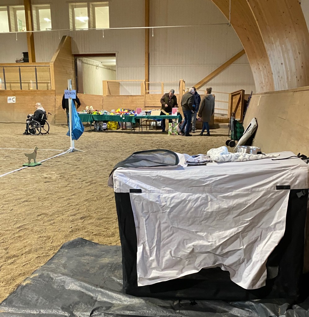 Vi gick upp i ottan, kl 04.00, hinna med att ge hundarna mat och rasta dem innan färden till Hallstahammar. GRK Västmanland anordnar denna utställning i Hallstahammars ridhus. Vi har anmält 3 av våra hundar Skye, Rosie och Millie