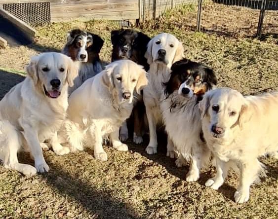 I måndag fick vi besök av Anette och hennes 3 Aussie grabbar Chappe, Prince och Jack .. mina Golden från vänster är Max, Rosie, Millie och Skye .. ”Lazer är inte med på fotot” De leker så bra tillsammans ett härligt gäng 💕 och vi tog en fika utomhus i det fina men kalla vädret, så härligt när ☀️ tittar fram