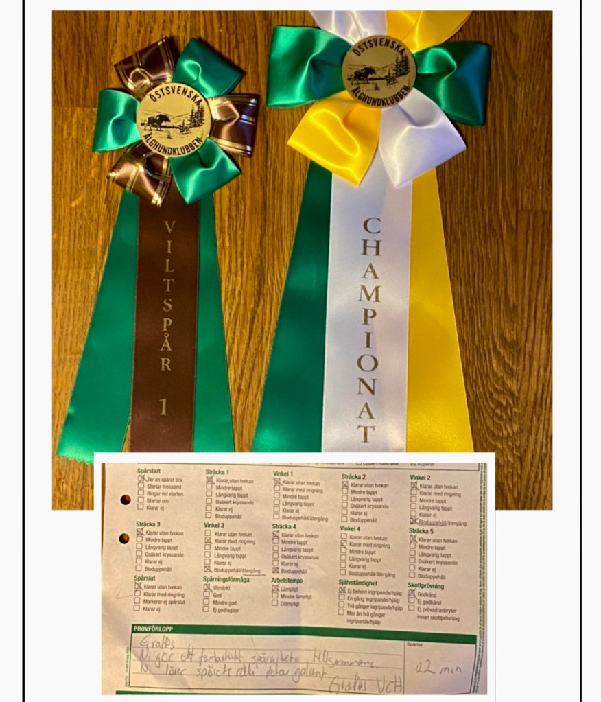 Millie tog sin tredje raka första pris🥇i öppen klassen viltspårprov . Hon gjorde ett fantastiskt spårarbete och nu kan hon titulera sig 🇸🇪 SVENSK VILTSPÅRCHAMPION 🇸🇪