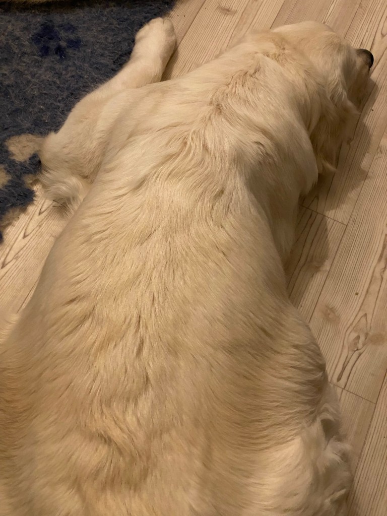 Nu förflyttas valparna sakteliga bakĂ„t mot ”utgĂ„ngen” nĂ„gra dagar innan valpningen kĂ€nns det nĂ€stan som om tikens mage ”hĂ€nger” mot lĂ„ren