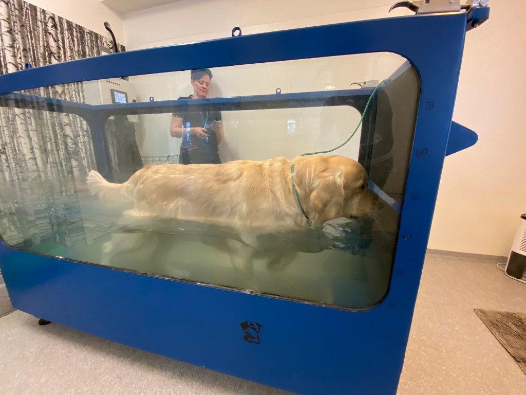 Rehabiliteringen gÄr bra. I början sÄg man en tydlig avlastning av det opererade benet. sakta men sÀkert har han förbÀttrat rörelsen i sitt ben.. Vattentrasken Àr en del av rehabilitering, vattnet avlastar och ger samtidigt motstÄnd, Max trÀnar 1 -2 ggr i veckan och vattentrasken Àr en bra och kontrollerad trÀningsform jÀmfört med simning eftersom man kan styra svÄrighetsgraden genom att reglera hastigheten och vattennivÄn. Vi har Àven en 6 mÄnaders schema med olika aktiviteter sÄ som rörlighets-, balanstrÀning och riktlinjer att följa . Efter 6 mÄnader finns Àr det inga restriktioner att följa, förutsatt att ÄterhÀmtningen samt pÄbyggnad av muskulatur har skett utan komplikationer.
