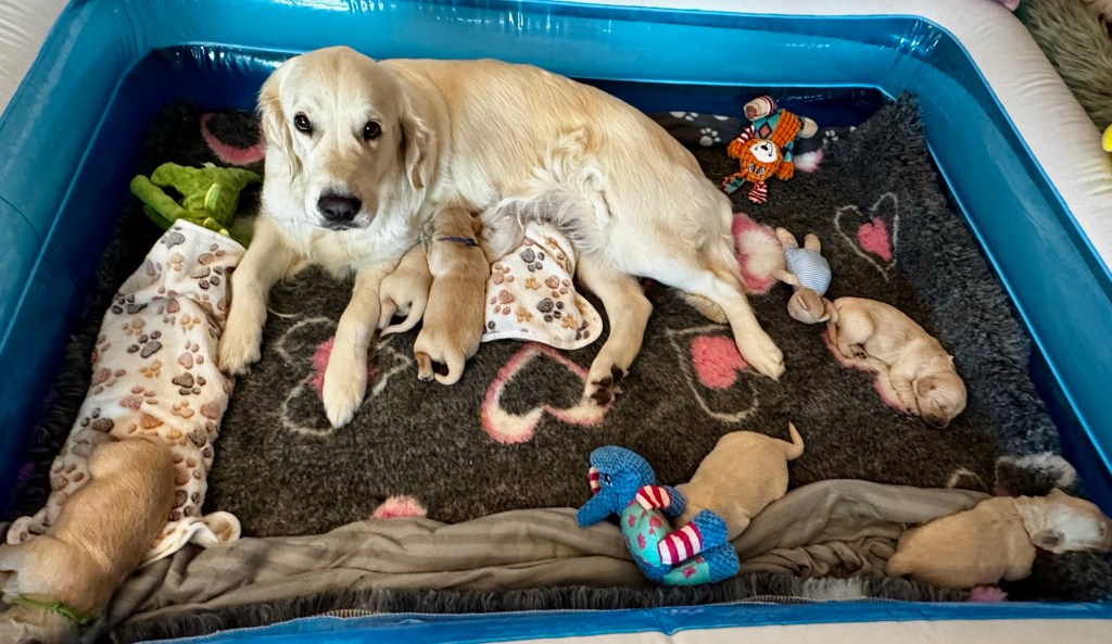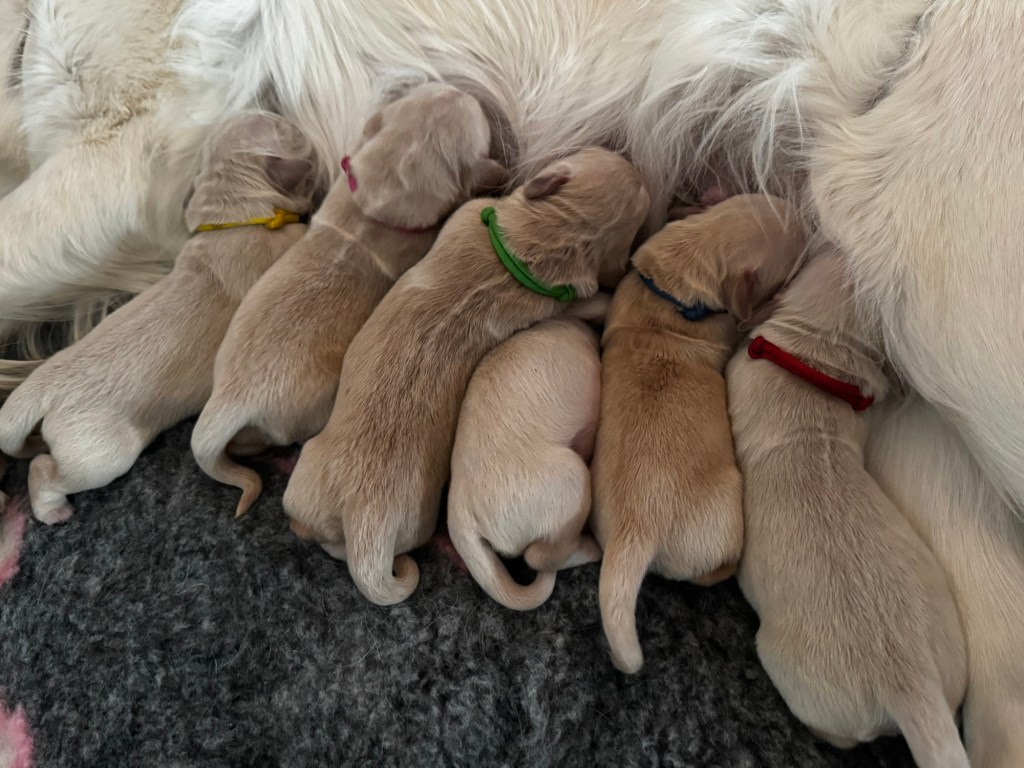 Nellie och valparna mår bra. De vägs varje morgon och de ökar fint i vikt.