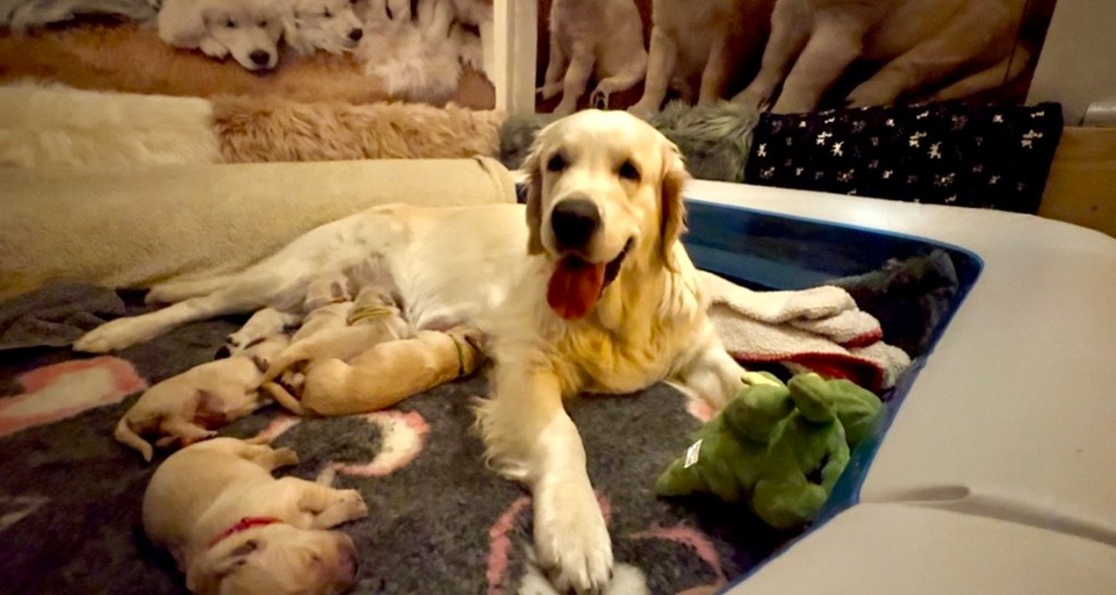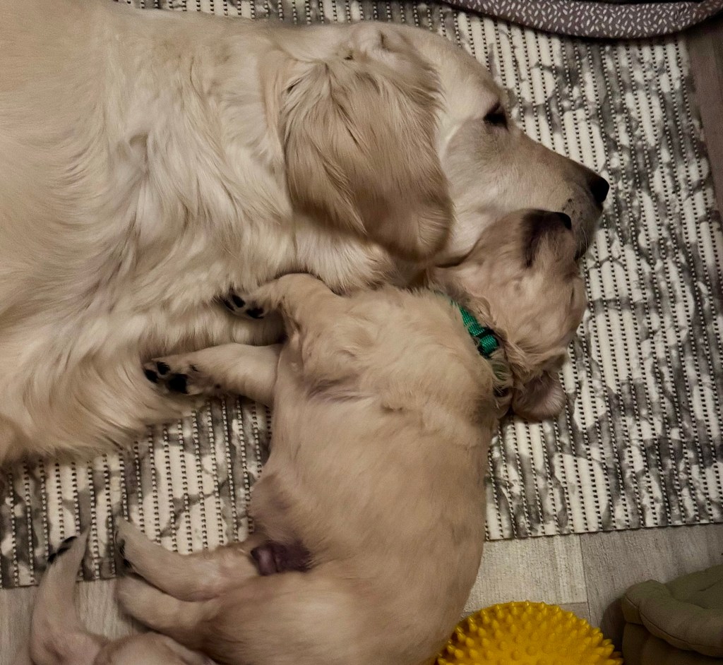 Att vila i lugn och ro tillsammans med sina valpar 💚💛🧡💙🩷❤️