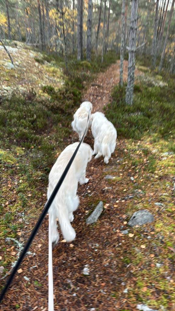 Morgon promenad med Rosie & Nellie & Millie .. Nu börjar kylan komma det var -2 grader på morgonen.. Solen värmde upp lite under förmiddagen